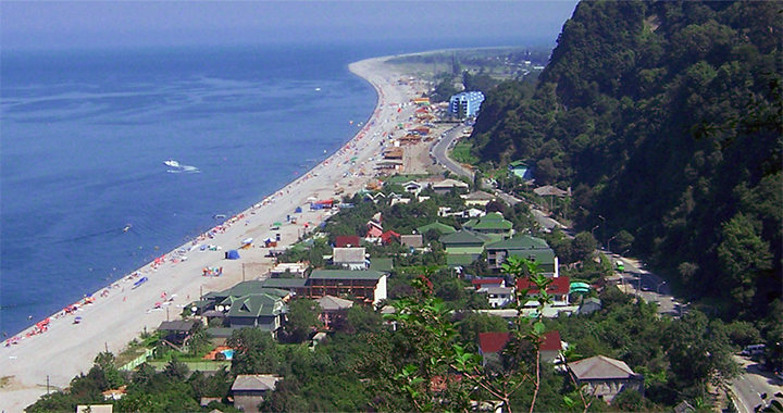 Квариати - курортный поселок, здесь неплохой пляж длиной с километр. Северная сторона пляжа переходит в пляж Гонио, а южная упирается в скалы, отделяющие этот пляж от пляжа Сарпи. По многим причинам этот курорт кажется мне наиболее позитивным в окрестностях Батуми. Для начала, местность тут не плоская, как в Гонио и севернее, а с горами и скалами. В этом смысле Квариати похож на Сарпи, но здесь нет шумной таможни и трасса проходит в стороне от пляжа и никого не раздражает. Очередей из фур тут тоже нет. Далее на север местность скучнее и близость большого города сказывается.