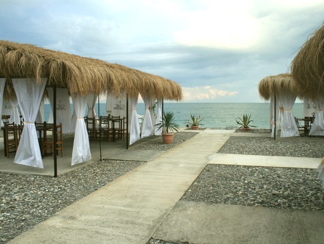 По дороге из Квариати в Сарпи можно наткнуться на уединённый дикий пляжик — довольно симпатичный, но расположен он буквально под шоссе.